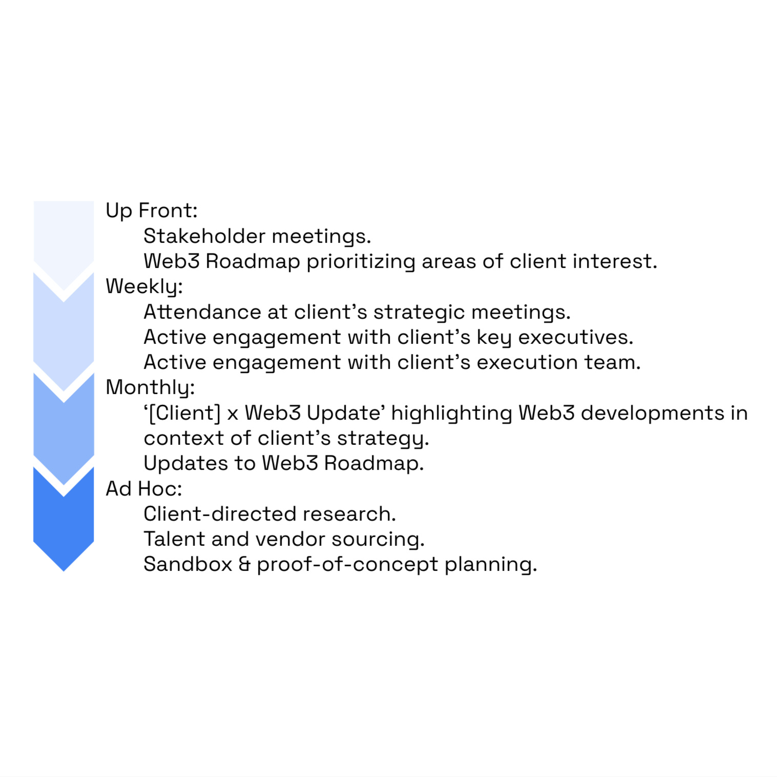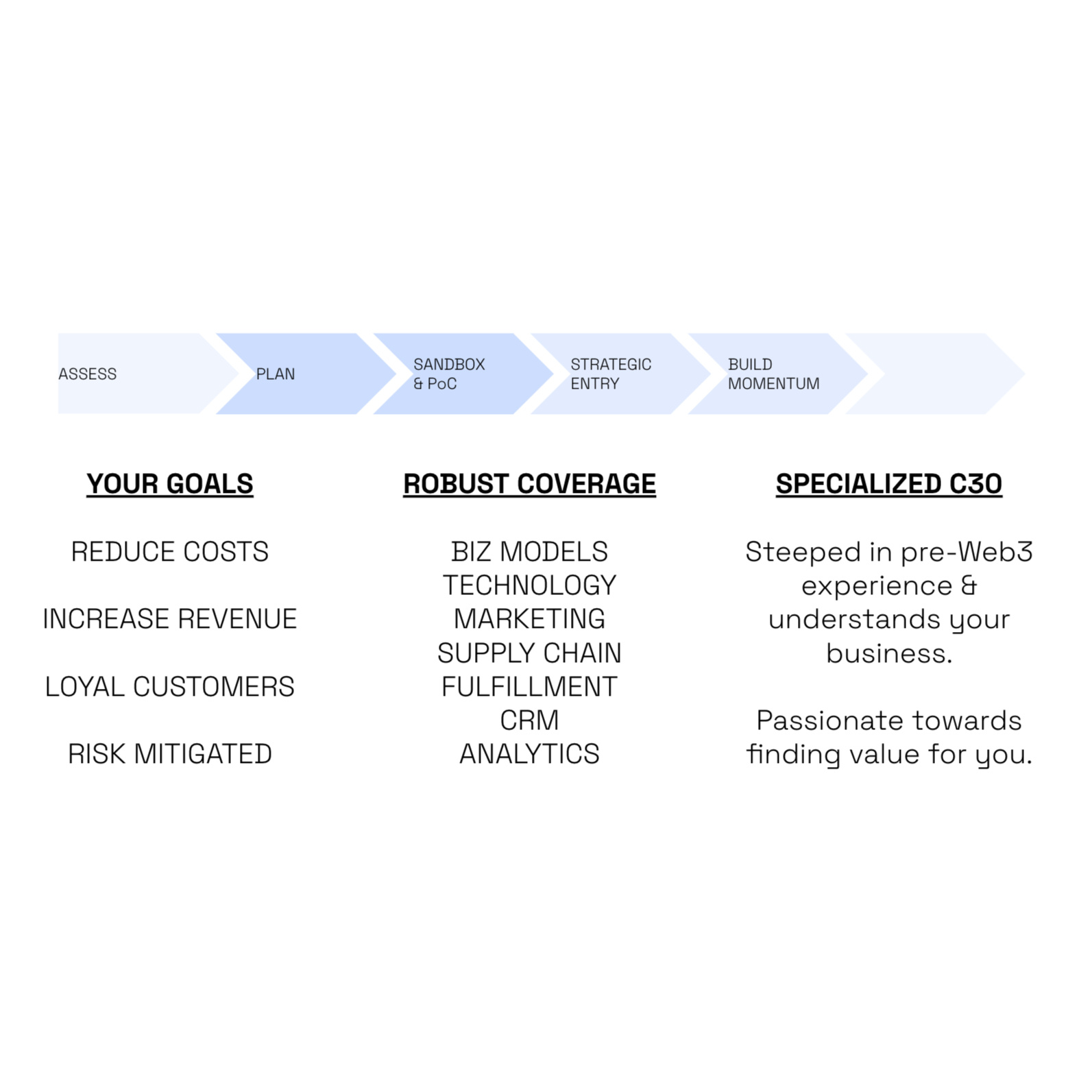 are equipped to learn your business and address your C-Suite's strategies in context of Web3.